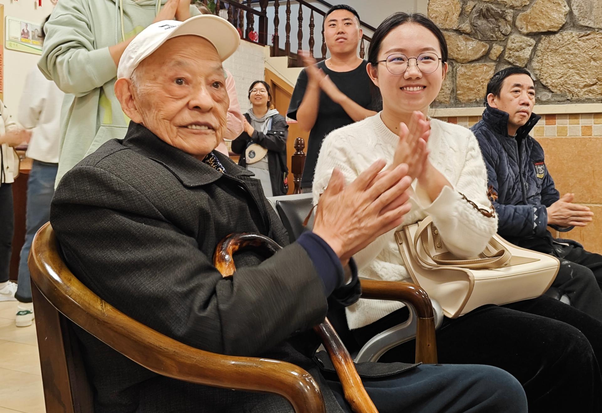 来到活动中心,同学们与老人们进行了亲切温馨的交流。老人们像家中长辈一般挽着志愿者的手臂,关心大家的学习生活,讲述自己年轻时的故事,分享在关爱中心的日常生活琐事。在一片欢声笑语中,大家合唱了《没有共产党就没有新中国》,歌声回响在耳畔,“努力学习,报效祖国”的谆谆嘱咐也深深刻入大家心中。活动最后,志愿者教爷爷奶奶们做手指操,活动关节;一起折纸绘画,带领爷爷奶奶重温儿时乐趣等。活动结束时,爷爷奶奶们脸上洋溢着幸福的笑容,他们对同学们的热心关爱表示赞赏,并期待下一次见面。