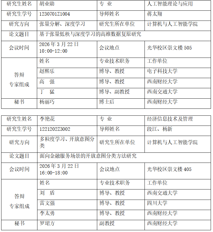 计算机与人工智能学院博士学位论文预答辩公告(2026年3月22日)