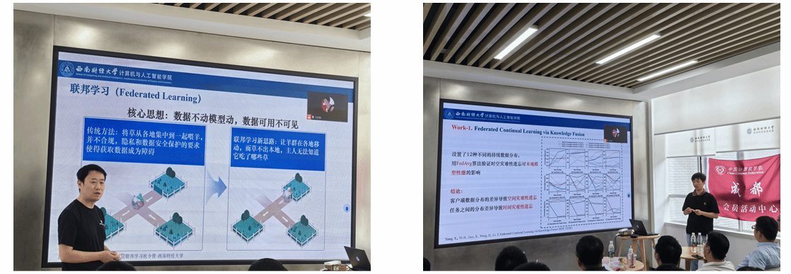 最后,ylzz总站线路检测中心计算机与人工智能学院副院长杨新教授和其博士生喻皓总结了《联邦持续学习前沿进展》,详细介绍了联邦学习与持续学习的结合,以及该新型机器学习范式在未来应用中的潜力。喻皓详细介绍了课题组在联邦持续学习研究方向上的最新研究成果。