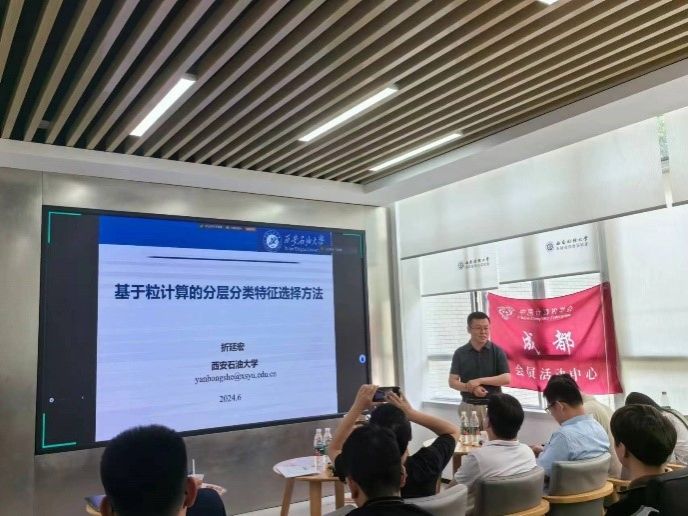 紧接着,西安石油大学理学院副院长折延宏教授与其硕士生田秧带来了题为《基于模糊粗糙集的分层增量特征选择方法》的报告,详细介绍了分层分类作为一种利用数据类别间层次结构关系进行分类的方法,在大规模数据组织和处理中的高效性。田秧则进一步讲解了他们团队在增量特征选择方法方面的最新研究进展。