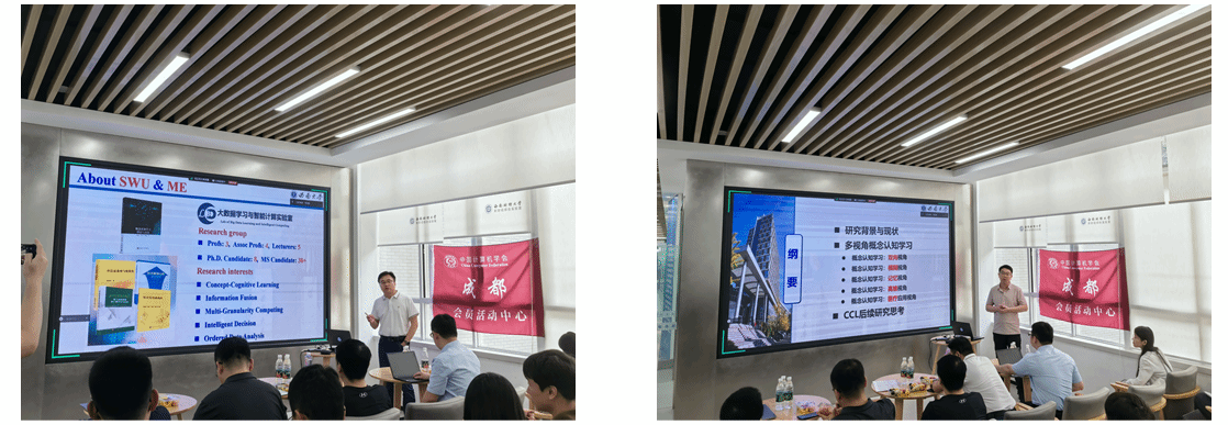 首先,杨新教授介绍了“双优”论坛发起原由和论坛相关情况。在报告正式分享环节,西南大学人工智能学院徐伟华教授和其博士生郭豆豆带来了题为《概念认知学习与粒计算:从数据中挖掘与融合知识》的报告,详细回顾了概念认知学习的相关研究成果,并从双向、模糊、记忆、高维以及医疗诊断应用等多个角度分享和介绍了概念认知学习的最新进展。郭豆豆博士也分享了他们团队在概念认知研究方向上的最新成果。