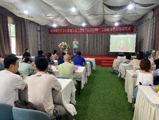 学院党委书记舒滔在致辞中高度赞扬了荣休教师们为学院发展所做出的巨大贡献,并分享了与他们共事的美好回忆。他强调,老教师们的智慧和经验是学院的宝贵财富,他们严谨治学、无私奉献的精神更是后辈们学习的榜样,将永远激励着一代又一代的西财计算机人。