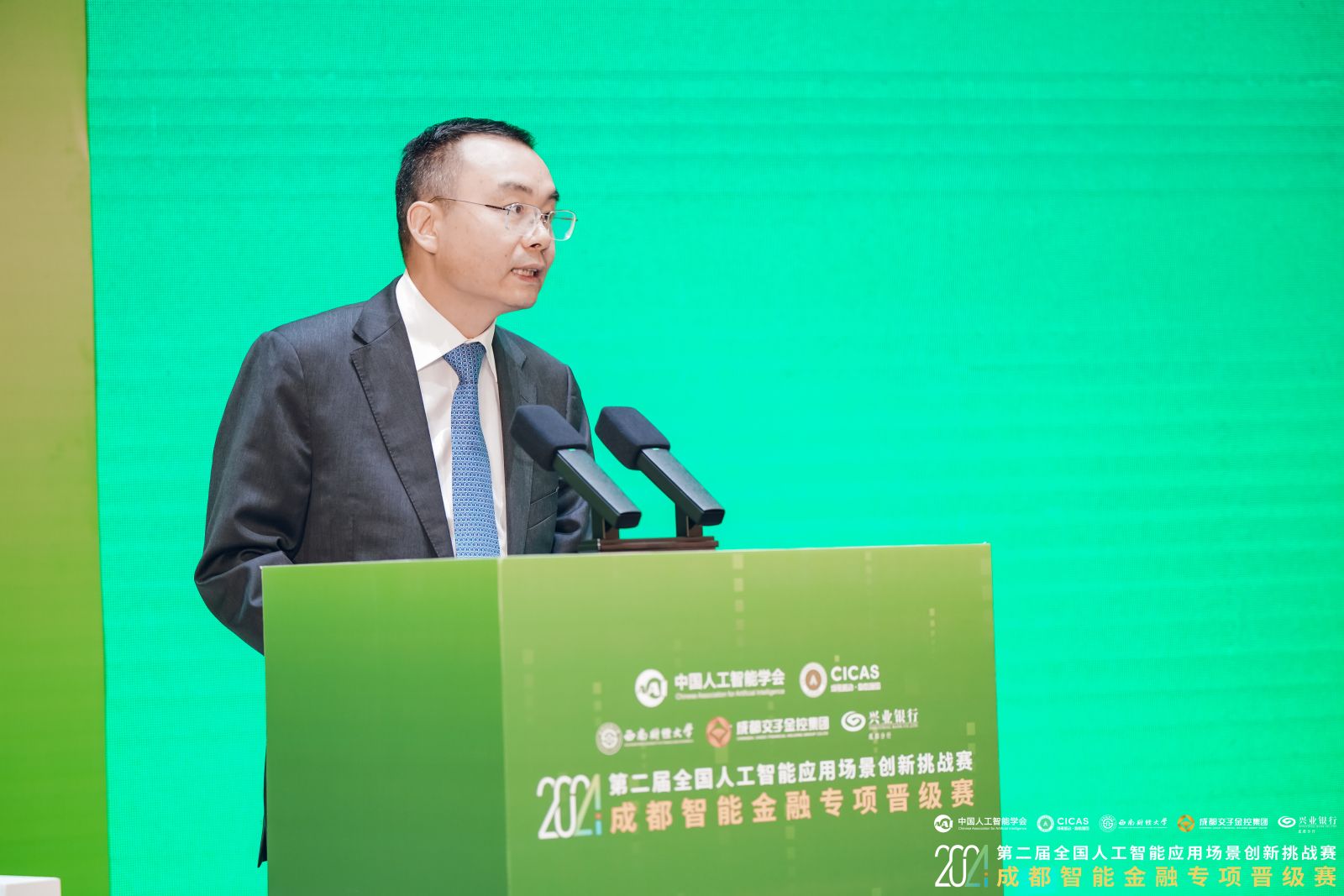 学院院长、四川省人工智能学会副理事长刘贵松代表大赛评审组介绍了大赛情况。他表示,成都智能金融专项晋级赛采用“开放专题”应用场景赛道的竞赛模式,立足成都智能金融及数字经济等产业布局,共发布了“智能金融营销与服务等5个赛题,重点关注机器学习、深度学习、自然语言处理等前沿技术在金融风控、客户服务、投资决策等领域的应用,探索人工智能技术在金融业务流程优化、产品创新和风险管理等方面的潜力,并结合金融行业的实际需求和痛点,挖掘具有代表性、挑战性和问题和典型应用场景。
