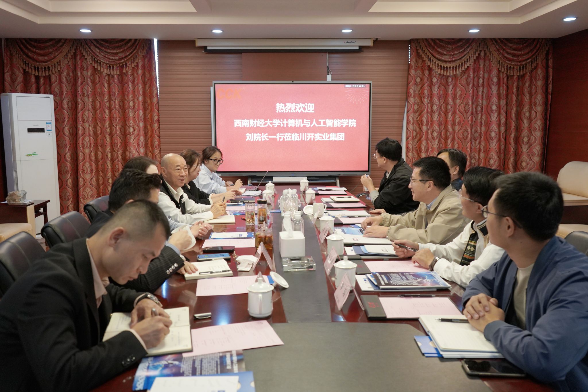 为迎接学校百年校庆和学院四十周年院庆,进一步加强校友联系,做好校友服务工作,10月28日,计算机与人工智能学院党委书记舒滔、院长刘贵松带队前往校友企业——川开实业集团有限公司调研座谈交流。川开集团董事局主席、校友简兴福,常务副总裁、校友薛慧,副总裁简川林等领导出席了调研交流座谈会,薛慧主持会议。