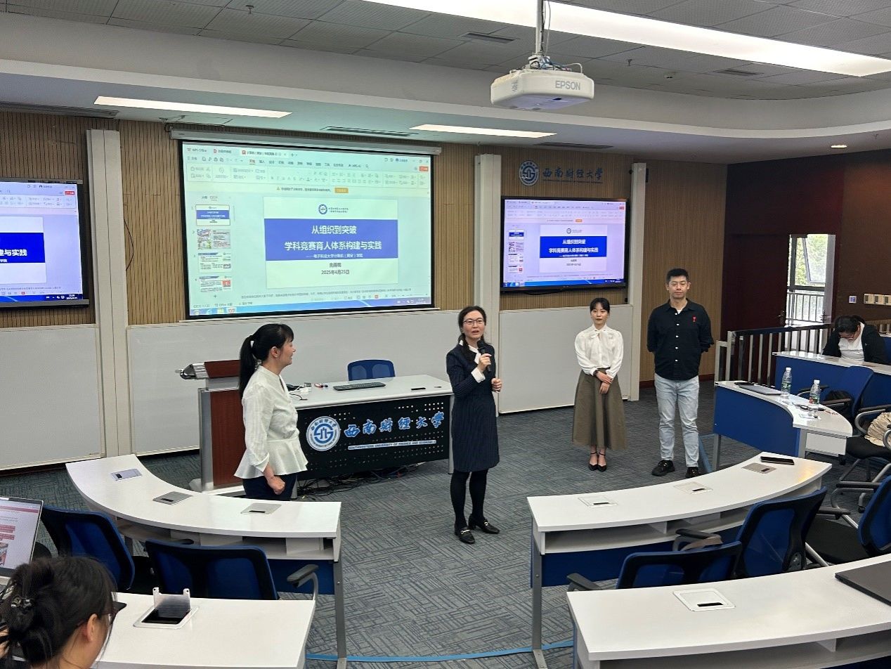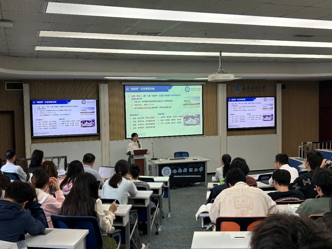 4月25日下午,学院联合教师教学发展中心,在柳林校区格致楼303会议室成功开展“中国国际大学生创新大赛”金奖团队经验分享会。活动特邀赛事全国金奖团队核心成员,电子科技大学计算机学院首席教授孙明与助理辅导员向雨桐担任主讲,学院党委副书记谢奉君、本科教学副院长刘家芬,以及近百名师生到场参与活动,会议由刘家芬副院长主持。
