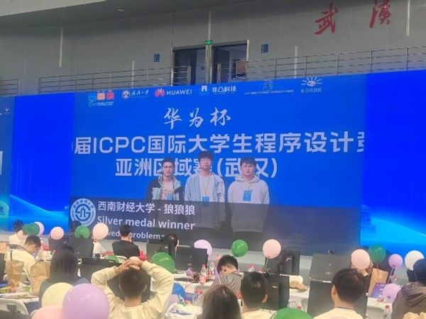 11月2日,在ICPC亚洲区(武汉站)中,吴晗、匡政宇、杨龙皓组成的队伍获得银奖。