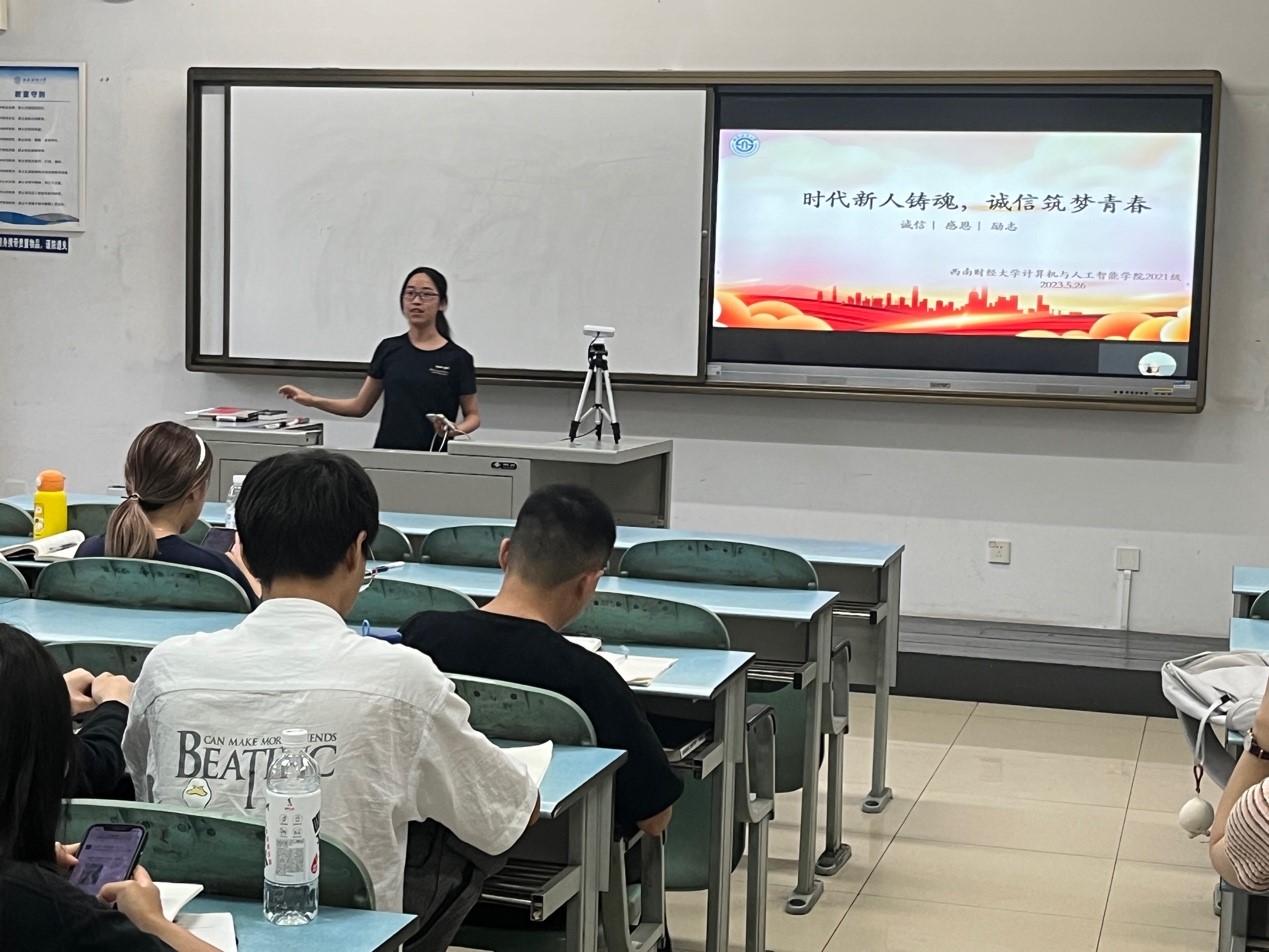 2023年5月26日,计算机与人工智能学院2021级在经世楼C308和C306分别举行了时代新人铸魂,诚信逐梦青春主题班会。