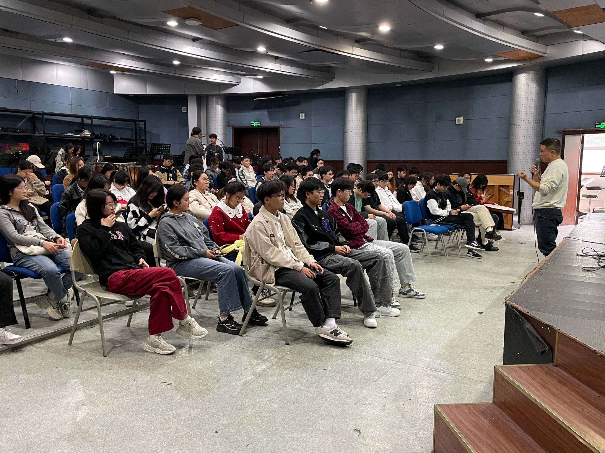 11月5日下午,由计算机与人工智能学院主办的文化素质讲座“音乐的力量:从热爱到自我实现”在学校音乐厅顺利开展。主讲人为通亮音乐创办人郭军,学院共计100余名同学参加讲座。