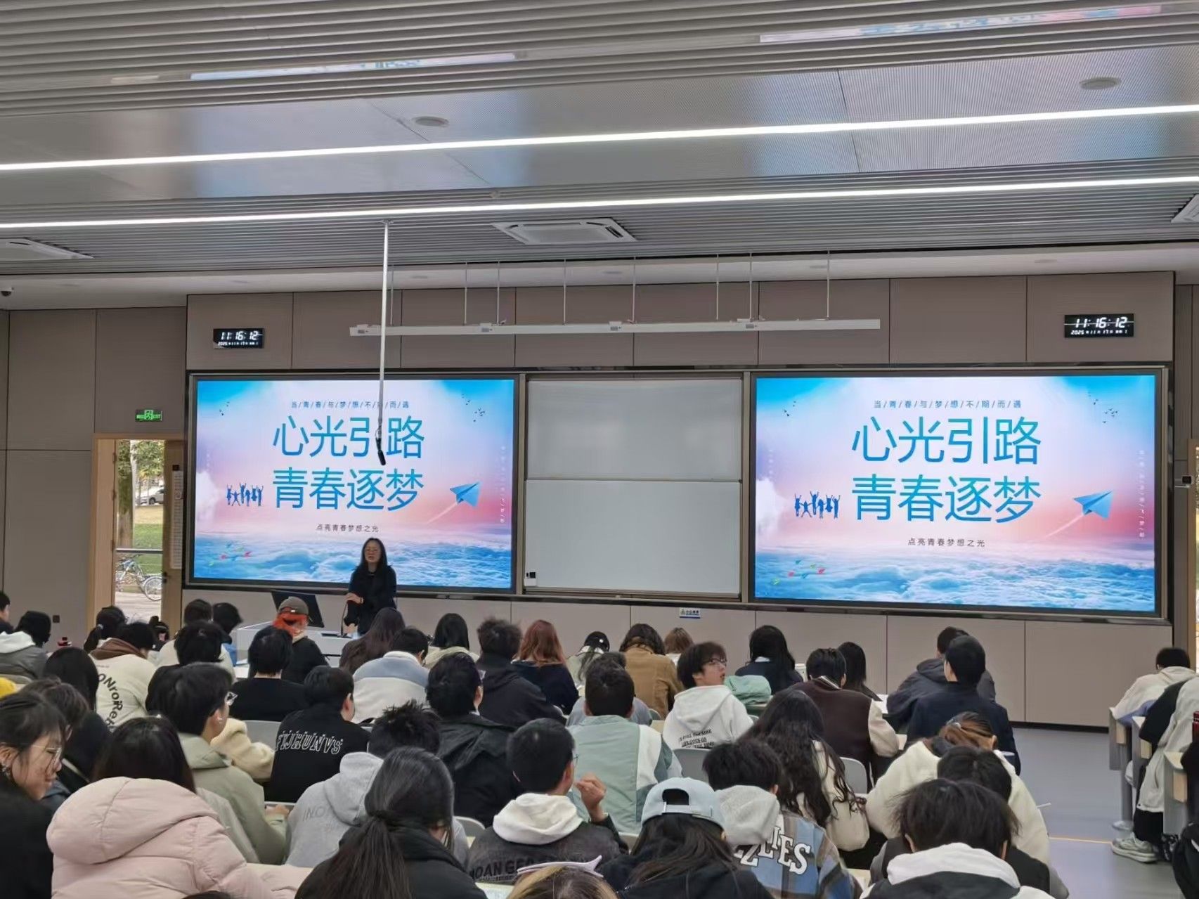 学院心理专项老师伍泽莲结合大学生群体特点,系统剖析了发展型、病理型、境遇型、存在型等常见心理危机的表现形式。伍老师通过真实案例分享,传授了情绪调节的实用技巧,强调“主动觉察是预防的第一步”。针对有需要的学生,她详细介绍了学校心理咨询室预约流程、24小时心理援助热线及成都市各大医院等就医途径,消除了同学们寻求专业帮助的顾虑,让“心理求助不是软弱”的理念深入人心。