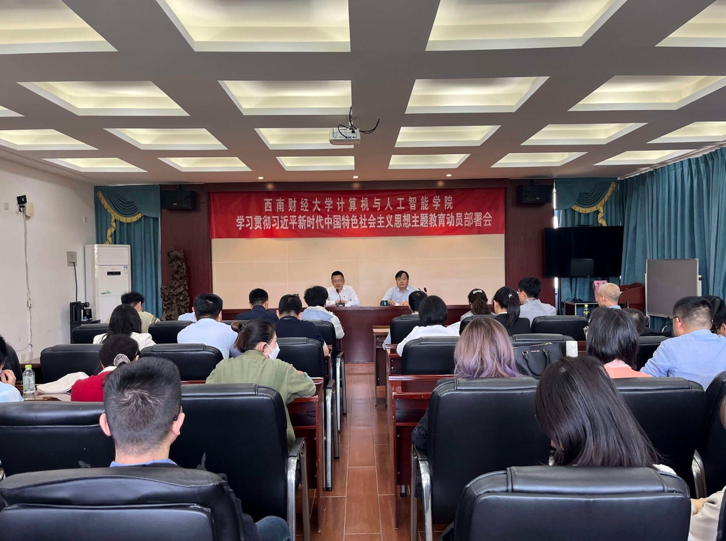 4月25日下午,计算机与人工智能学院在通博楼B423会议室举行学习贯彻习近平新时代中国特色社会主义思想主题教育动员部署会。学院党委书记舒滔作动员讲话,院长刘贵松主持会议。学院领导班子成员、全体教师党员、学生党员代表参加会议。