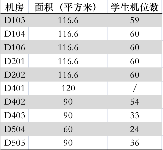 计算机实验教学中心现有机房信息
